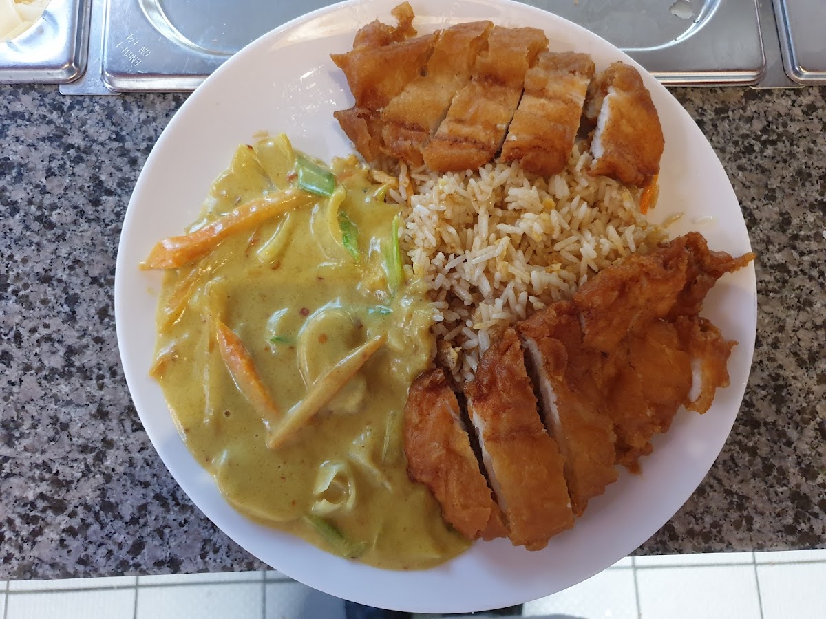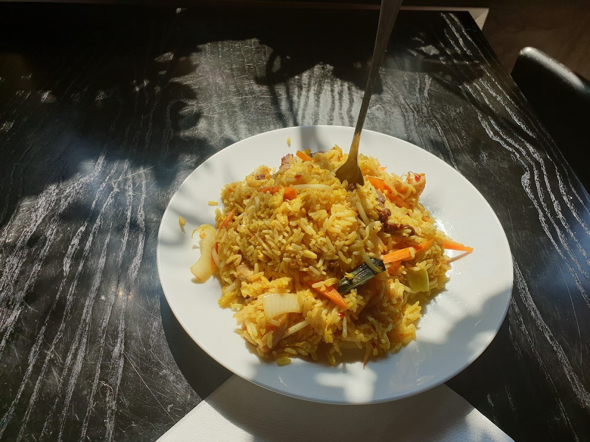 If you're in the mood for something crispy and savory, you can’t go wrong with the Frühlingsrolle. These crispy spring rolls are packed with fresh vegetables and perfectly fried to a golden crunch, making them a great snack or appetizer. Another must-try is the Gebratener Reis mit Knusprigen Hühnerfleisch und Curry Sosse, a fried rice dish with crispy chicken and a flavorful curry sauce. It’s a perfect blend of textures and tastes that’ll leave you coming back for more.